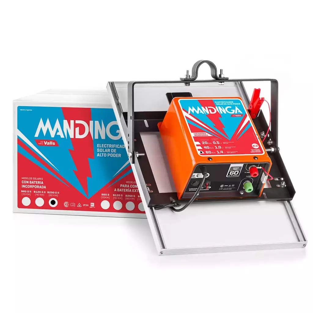 El Electrificador Mandinga® Solar 60 km está diseñado para ofrecer potencia y autonomía en campos medianos, donde no se dispone de energía eléctrica. Su panel solar de 18 W y batería de 18 A/h proporcionan hasta 9 días de autonomía, asegurando un funcionamiento constante y sin interrupciones.