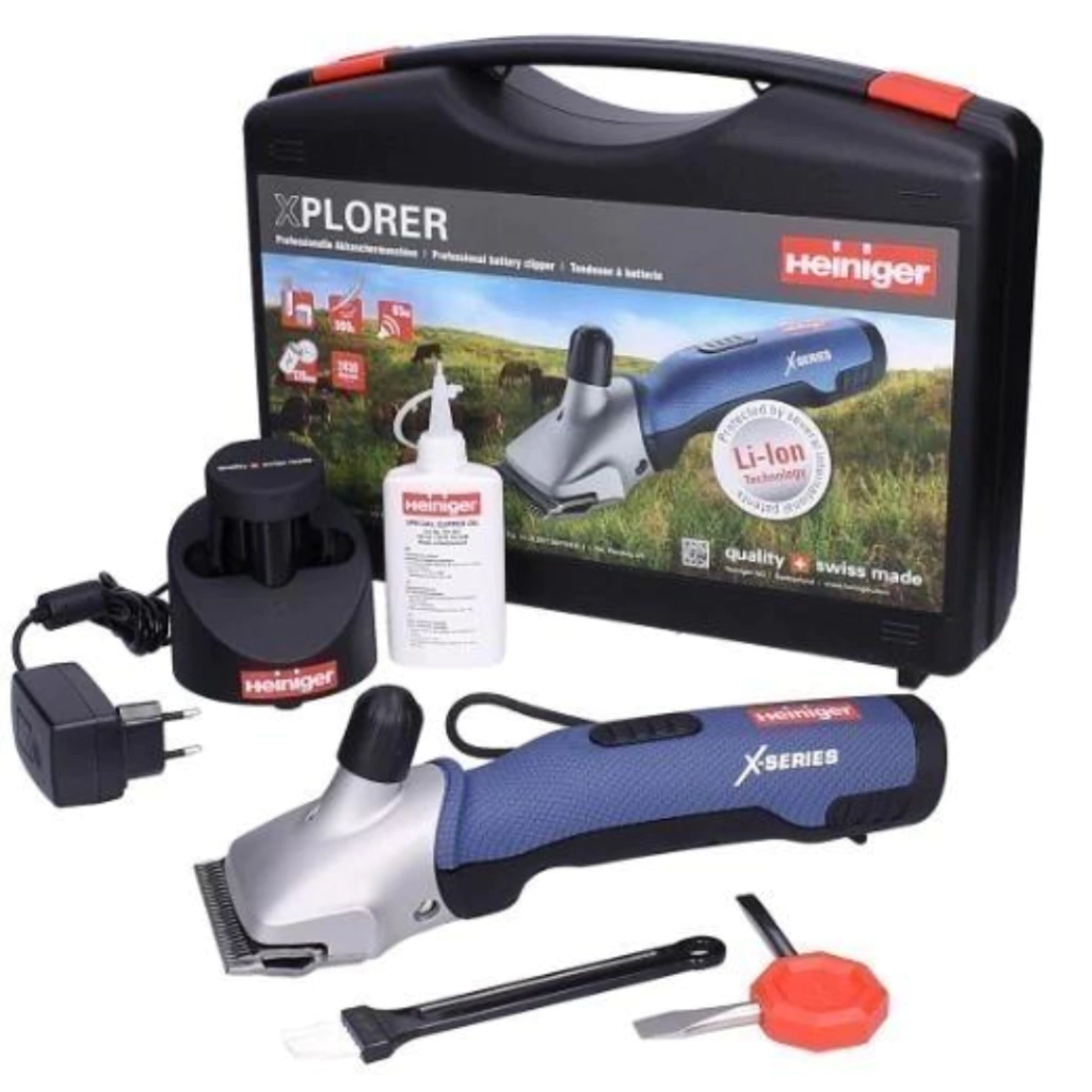 La esquiladora Xplorer es una herramienta profesional diseñada para el esquilado de ganado bovino y caballos. Gracias a su batería de iones de litio de alto rendimiento, ofrece hasta 120 minutos de uso continuo sin necesidad de cables, brindando mayor comodidad y libertad de movimiento en el trabajo diario.